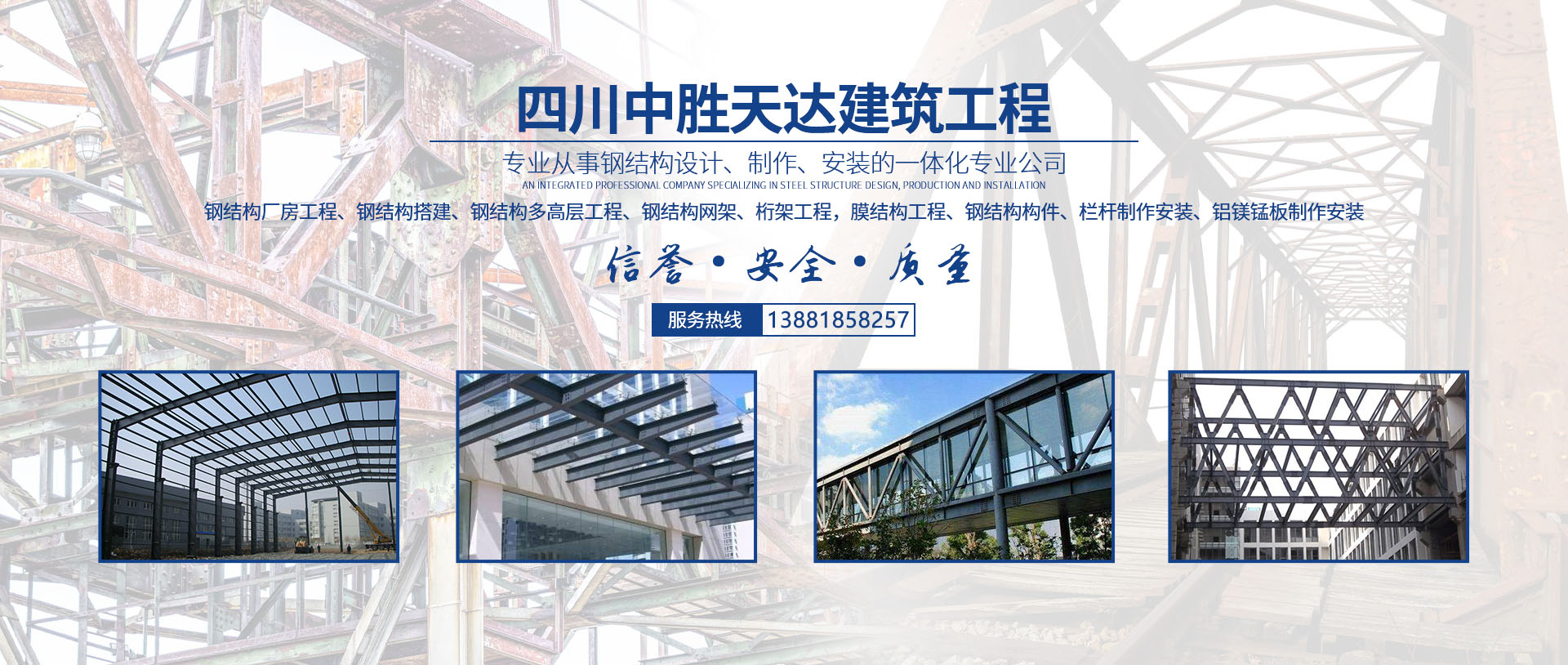 四川中勝天達建筑工程有限公司是一家專業從事鋼結構設計、制作、安裝的一體化專業公司,主要業務...